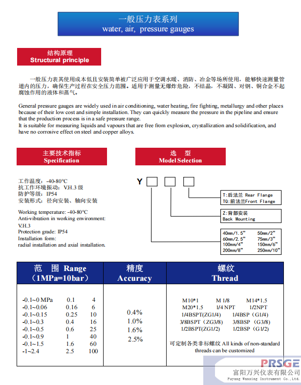 • 产品描述:一般压力表其使用成本低且安装简单被广泛应用于空调水暖、消防、冶金等场所使用,能够快速测量管道内的压力,确保生产过程在安全压力范围。适用于测量无爆炸危险,不结晶,不凝固、对钢、铜合金不起腐蚀作用的液体和蒸气。